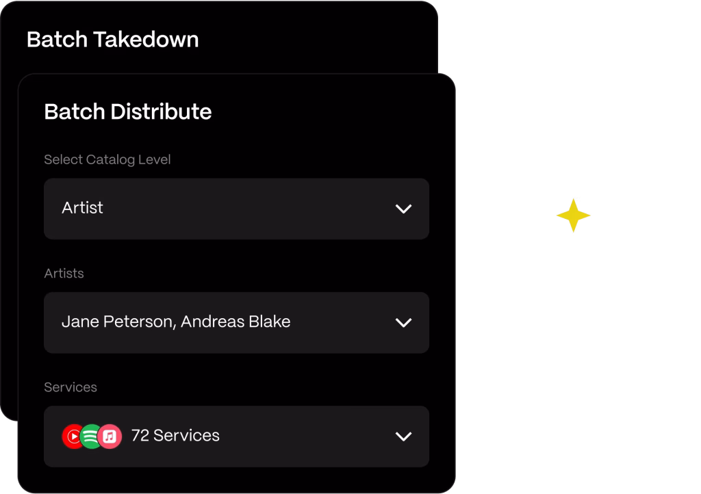 Scale your operations with batch distribution. Deliver, update or takedown large volumes of content to multiple platforms in a single operation.