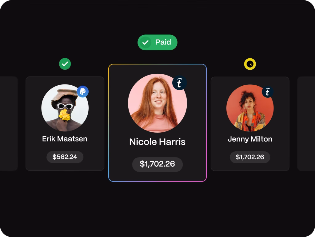 Once balances update, royalties flow instantly to artists and contributors through secure global payments. Simplify the final step, ensuring fast, reliable payouts and giving rightsholders immediate access to their earnings.